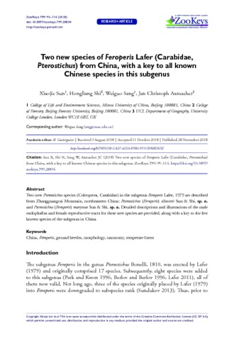 Title: | Two New Species of Feroperis Lafer (Carabidae: Pterostichus) From China, With a Key to All Known Chinese Species in This Subgenus |