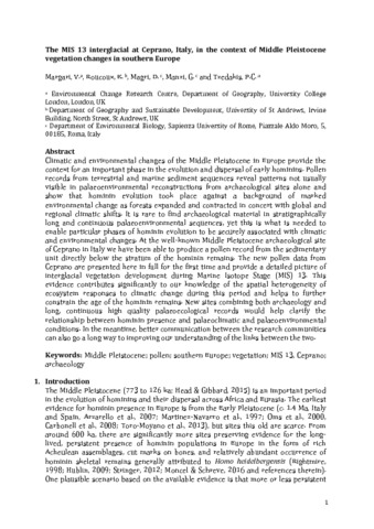Title: | The MIS 13 Interglacial at Ceprano, Italy, in the Context of Middle Pleistocene Vegetation Changes in Southern Europe |
