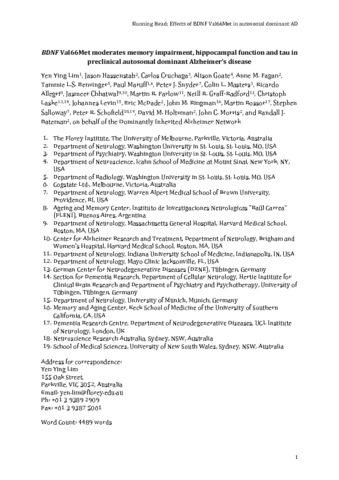 Rossor_BDNF Val66Met moderates memory impairment, hippocampal function and tau in preclinical autosomal dominant Alzheimer's disease_AAM.pdf - Accepted Version Download (1MB) | Preview |