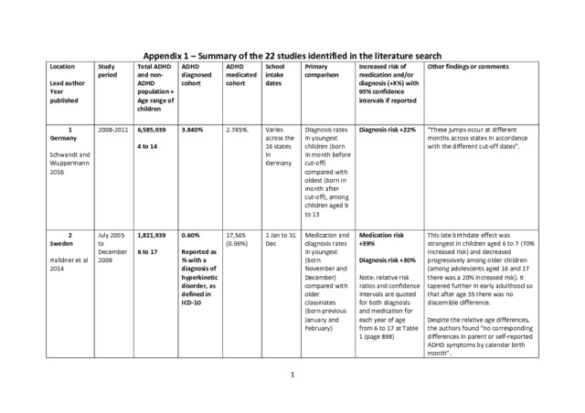 Attention deficit hyperactivity disorder late birthdate effect common in both high and low prescribing international jurisdictions: systematic review.