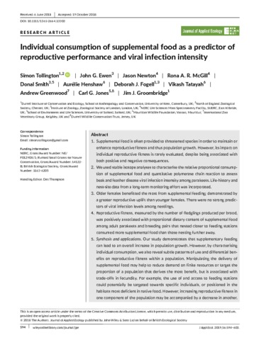 Title: | Characterising individual consumption of supplemental food by Mauritius parakeets as a predictor of reproductive performance and viral infection intensity |