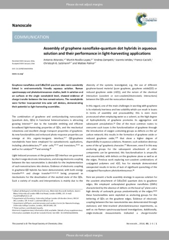 Title: | Assembly of graphene nanoflake–quantum dot hybrids in aqueous solution and their performance in light-harvesting applications |