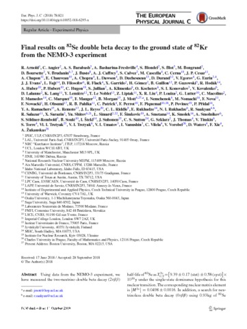 Cascella_Final results on ⁸²Se double beta decay to the ground state of ⁸²Kr from the NEMO-3 experiment_VoR.pdf - Published Version Download (1MB) | Preview |