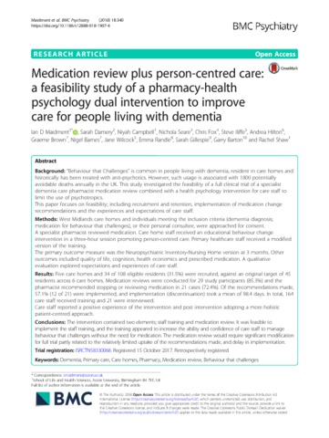 Medication Review Plus Person-centred Care: a Feasibility Study of a Pharmacy-health Psychology Dual Intervention to Improve Care for People Living With Dementia.