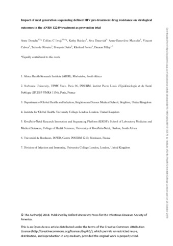 | Title: | Impact of next generation sequencing defined HIV pre-treatment drug resistance on virological outcomes in the ANRS 12249 treatment as prevention trial |