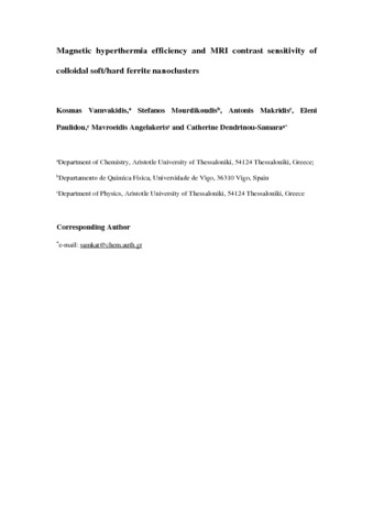 Title: | Magnetic hyperthermia efficiency and MRI contrast sensitivity of colloidal soft/hard ferrite nanoclusters |