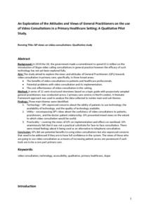 Title: | An exploration of the attitudes and views of general practitioners on the use of video consultations in a primary healthcare setting: a qualitative pilot study |