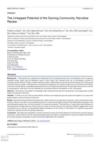 Title: | The Untapped Potential of the Gaming Community: Narrative Review |