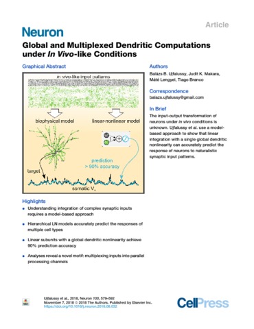 Title: | Global and Multiplexed Dendritic Computations under In Vivo-like Conditions |