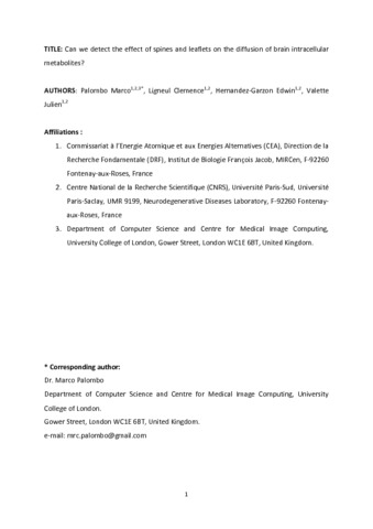 | Title: | Can we detect the effect of spines and leaflets on the diffusion of brain intracellular metabolites? |