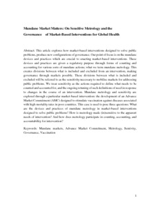 | Title: | Mundane Market Matters: On Sensitive Metrology and the Governance of Market-Based Interventions for Global Health |