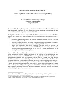Title: | Submission to the Chilcot Iraq Inquiry on the Legal Basis for the 2003 UK Use of Force Against Iraq |