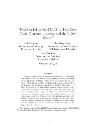 Title: | Trends in educational mobility: How does China compare to Europe and the United States? |