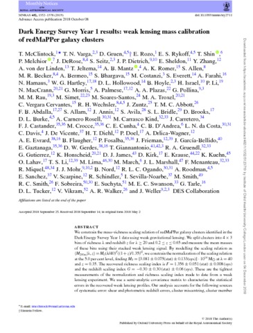 Title: | Dark Energy Survey Year 1 results: Weak lensing mass calibration of redMaPPer galaxy clusters |