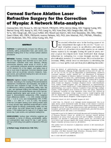Title: | Corneal Surface Ablation Laser Refractive Surgery for the Correction of Myopia: A Network Meta-analysis |