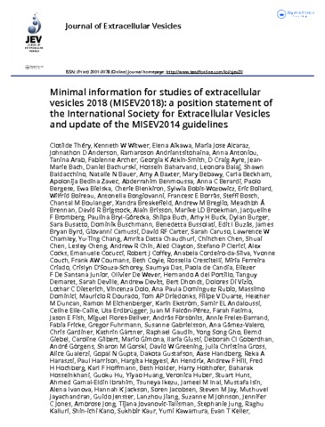 Title: | Minimal information for studies of extracellular vesicles 2018 (MISEV2018): a position statement of the International Society for Extracellular Vesicles and update of the MISEV2014 guidelines |