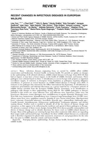 Many infectious diseases originating from, or carried by, wildlife affect wildlife conservation and biodiversity, livestock health, or human health. We provide an update on changes in the epidemiology of 25 selected infectious, wildlife-related diseases in Europe (from 2010-16) that had an impact, or may have a future impact, on the health of wildlife, livestock, and humans. These pathogens were selected based on their: 1) identification in recent Europe-wide projects as important surveillance targets, 2) inclusion in European Union legislation as pathogens requiring obligatory surveillance, 3) presence in recent literature on wildlife-related diseases in Europe since 2010, 4) inclusion in key pathogen lists released by the Office International des Epizooties, 5) identification in conference presentations and informal discussions on a group email list by a European network of wildlife disease scientists from the European Wildlife Disease Association, or 6) identification as pathogens with changes in their epidemiology during 2010-16. The wildlife pathogens or diseases included in this review are: avian influenza virus, seal influenza virus, lagoviruses, rabies virus, bat lyssaviruses, filoviruses, canine distemper virus, morbilliviruses in aquatic mammals, bluetongue virus, West Nile virus, hantaviruses, Schmallenberg virus, Crimean-Congo hemorrhagic fever (CCHF) virus, African swine fever virus, amphibian ranavirus, hepatitis E virus, bovine tuberculosis ( Mycobacterium bovis), tularemia ( Francisella tularensis), brucellosis ( Brucella spp.), salmonellosis ( Salmonella spp.), Coxiella burnetii, chytridiomycosis, Echinococcus multilocularis, Leishmania infantum, and chronic wasting disease. Further work is needed to identify all of the key drivers of disease change and emergence, as they appear to be influencing the incidence and spread of these pathogens in Europe. We present a summary of these recent changes during 2010-16 to discuss possible commonalities and drivers of disease change and to identify directions for future work on wildlife-related diseases in Europe. Many of the pathogens are entering Europe from other continents while others are expanding their ranges inside and beyond Europe. Surveillance for these wildlife-related diseases at a continental scale is therefore important for planet-wide assessment, awareness of, and preparedness for the risks they may pose to wildlife, domestic animal, and human health.