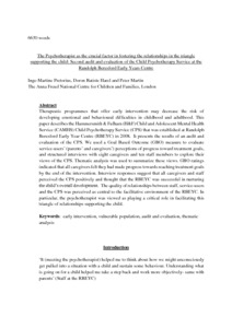 Title: | The psychotherapist as the crucial factor in fostering the relationships in the triangle supporting the child: second audit and evaluation of the child psychotherapy service at the Randolph Beresford early years centre |