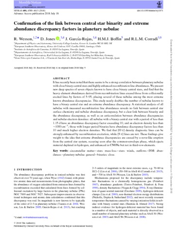 Title: | Confirmation of the link between central star binarity and extreme abundance discrepancy factors in planetary nebulae |