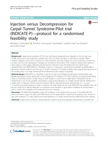 Title: | Injection versus Decompression for Carpal Tunnel Syndrome-Pilot trial (INDICATE-P)-protocol for a randomised feasibility study |