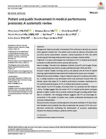 Lalani_Patient and public involvement in medical performance processes. A systematic review_VoR.pdf - Published Version Download (506kB) | Preview |