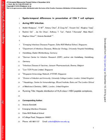 | Title: | Spatio-temporal differences in presentation of CD8 T cell epitopes during HBV infection |
