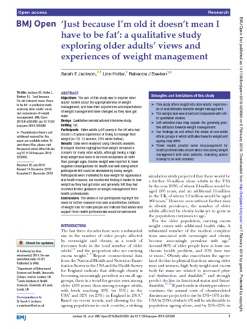 Title: | ‘Just because I’m old it doesn’t mean I have to be fat’: A qualitative study exploring older adults’ views and experiences of weight management |
