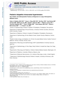 Pediatric Idiopathic Intracranial Hypertension Age, Gender, and Anthropometric Features at Diagnosis in a Large, Retrospective, Multisite Cohort.