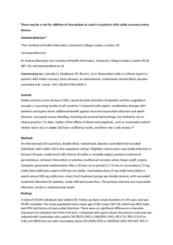 Banerjee There may be a role for addition of rivaroxaban to aspirin in patients with stable coronary artery disease.pdf - Accepted Version Download (682kB) | Preview |