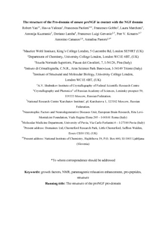 Gervasio_The Structure of the Pro-domain of Mouse proNGF in Contact with the NGF Domain_AAM.pdf - Accepted Version Download (303kB) | Preview |