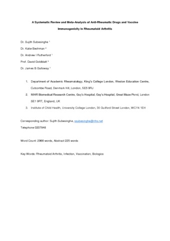 Title: | A Systematic Review and Metaanalysis of Antirheumatic Drugs and Vaccine Immunogenicity in Rheumatoid Arthritis |