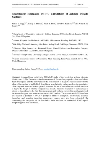 Pegg_AAM_Noncollinear Relativistic DFT+U Calculations of Actinide Dioxide Surfaces(FinalMain) (1).pdf - Accepted Version Download (2MB) | Preview |