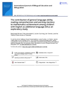 | Title: | The contribution of general language ability, reading comprehension and working memory to mathematics achievement among children with English as additional language (EAL): an exploratory study |