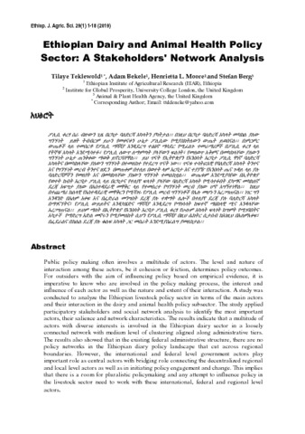| Title: | Ethiopian Dairy and Animal Health Policy Sector: A Stakeholders' Network Analysis |