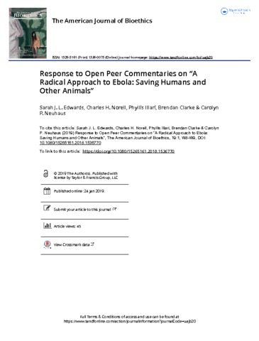 Clarke_Response to Open Peer Commentaries on A Radical Approach to Ebola. Saving Humans and Other Animals_VoR.pdf - Published Version Download (472kB) | Preview |