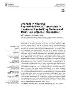 Title: | Changes in Neuronal Representations of Consonants in the Ascending Auditory System and Their Role in Speech Recognition |