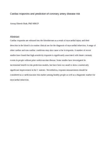 Title: | Cardiac troponins and prediction of coronary artery disease risk |