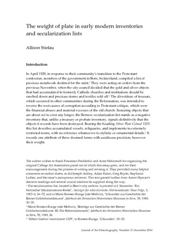 Title: | The Weight of Plate in Early Modern Inventories and Secularization Lists |