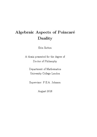 | Title: | Algebraic Aspects of Poincaré Duality |