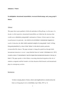 Title: | In Anticipation: Educational (Im)mobilities, Structural Disadvantage, and Young People’s Futures |