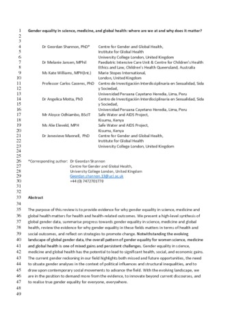 | Title: | Gender equality in science, medicine, and global health: where are we at and why does it matter? |