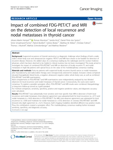 Title: | Impact of combined FDG-PET/CT and MRI on the detection of local recurrence and nodal metastases in thyroid cancer |