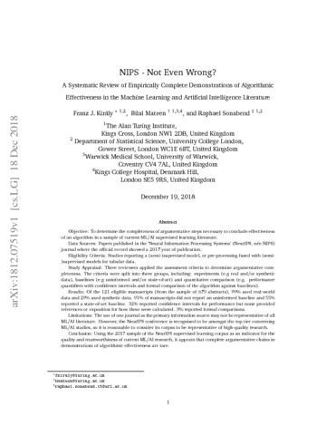 Title: | NIPS - Not Even Wrong? A Systematic Review of Empirically Complete Demonstrations of Algorithmic Effectiveness in the Machine Learning and Artificial Intelligence Literature |