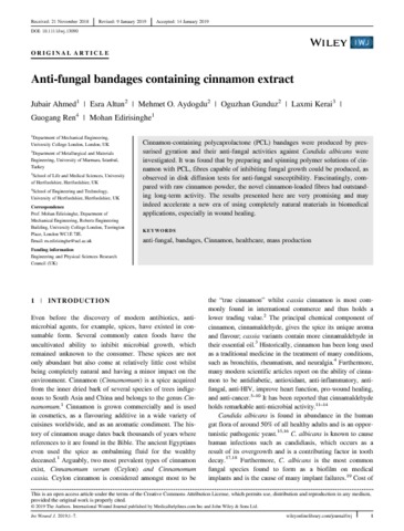 Edirisinghe_Anti-fungal bandages containing cinnamon extract_Proof.pdf - Published Version Download (1MB) | Preview |