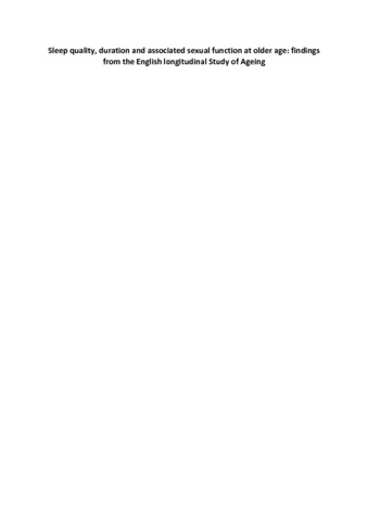 Title: | Sleep Quality, Duration, and Associated Sexual Function at Older Age: Findings from the English Longitudinal Study of Ageing |