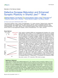 Title: | Defective Synapse Maturation and Enhanced Synaptic Plasticity in Shank2 Δex7-/- Mice |