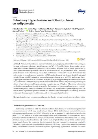 Title: | Pulmonary Hypertension and Obesity: Focus on Adiponectin |