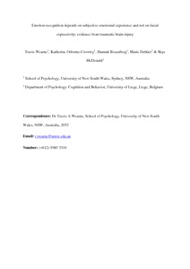 Title: | Emotion recognition depends on subjective emotional experience and not on facial expressivity: evidence from traumatic brain injury |