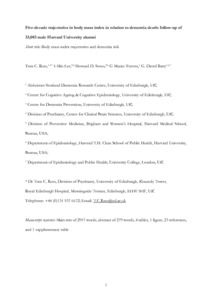 Title: | Five-decade trajectories in body mass index in relation to dementia death: follow-up of 33,083 male Harvard University alumni |