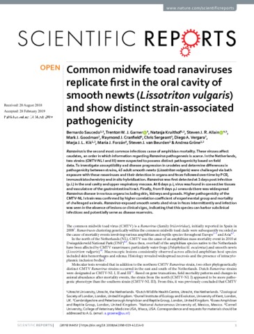 Common midwife toad ranaviruses replicate first in the oral cavity of smooth newts (Lissotriton vulgaris) and show distinct strain-associated pathogenicity.
